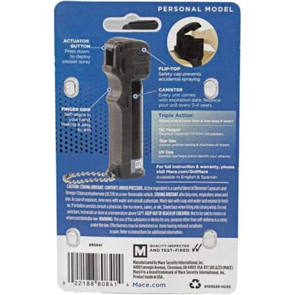 MaceĀ® Triple Action Police Pepper Spray safeguards you with a 3-in-1 formulation of pepper spray, tear gas, and UV dye for effective protection. Encased in robust housing that withstands law enforcement demands, this pepper spray delivers reliable defense.