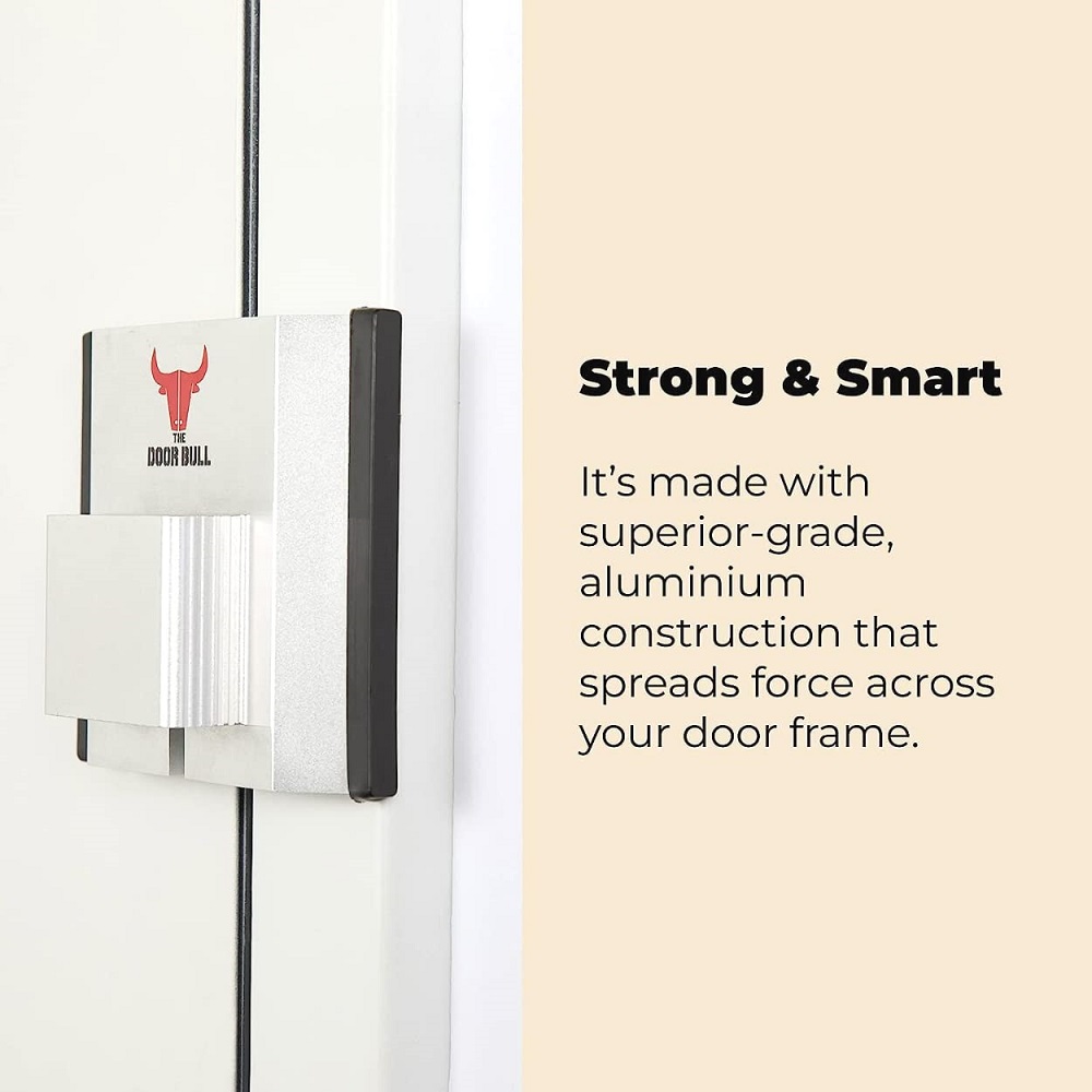 The Door Bull is a formidable barrier designed to safeguard your residence, enterprise, or educational environment. It affixes seamlessly to inward-swinging doors, rendering it nearly impossible to forcibly open the door.